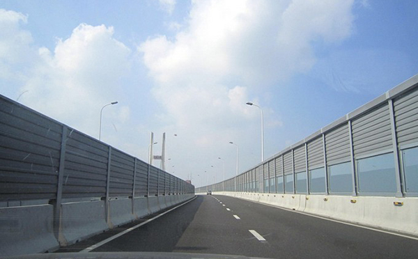 高架橋聲屏障目前常用的是吸聲和隔聲混合型聲屏障,高架橋聲屏障由上下部分金屬百葉吸聲屏、中部透明隔聲共三屏組成,整個屏障呈弧形。